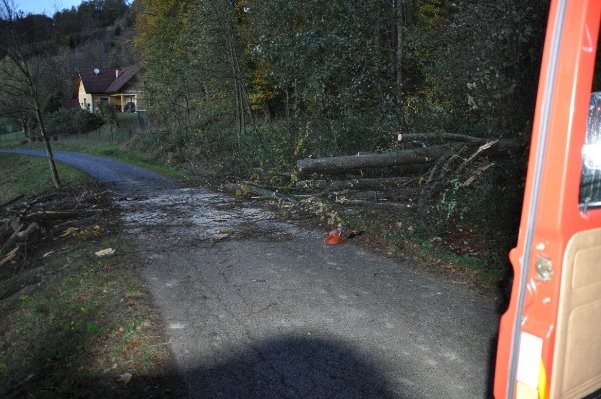 Während der Arbeiten wurden wir verständigt das Richtung Mettersdorf auch die Straße durch einen Baum blockiert ist. Es war eine große Buche. Die Straß wurde rasch freigeschnitten.