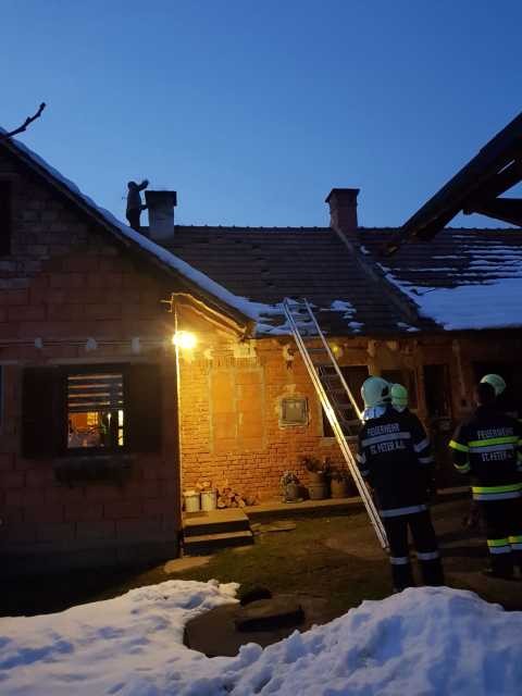 Kaminbrand am 15.2.2018 beim Anwesen Fauland. Im Einsatz waren die Freiwillige Feuerwehr Oberrosenberg und Sankt Peter am Ottersbach mit der Wärmebildkamera, sowie dem zuständigen Rauchfangkehrer.