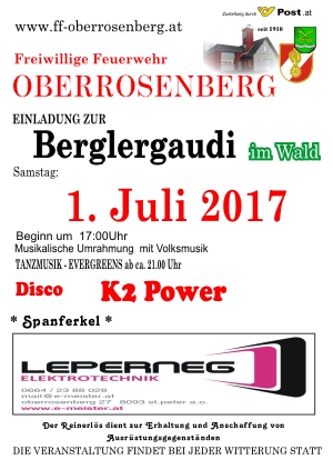 Auch dieses Jahr am Samstag dem 01. Juli 2017 ab 17:00 Uhr veranstalten wir unsere bekannte Berglergaudi. Sie erwarten kühle Getränke, Spanferkel und Tanzmusik. Wir [...]
